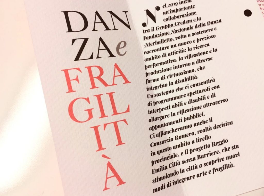 Nel 2019 inizia un’importante collaborazione tra la Fondazione Nazionale della Danza / Aterballetto e il progetto Reggio Città Senza Barriere per sostenere e raccontare un nuovo e prezioso ambito di attività: la ricerca performativa, la riflessione e la produzione intorno a diverse forme di virtuosismo, che integrino la disabilità.