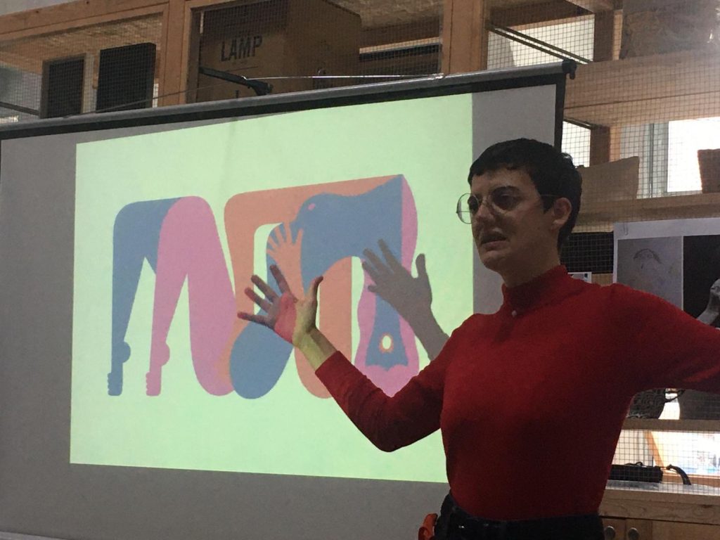 Abbiamo così realizzato due laboratori con persone con fragilità: uno con un centro diurno e l’altro con Art Factory, un collettivo di ragazzi con fragilità e disabilità che fanno pratica artistica, con i quali è stato realizzato un percorso di illustrazione a partire dalle suggestioni dei lavori di Olimpia.