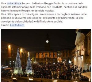 notte-di-luce-rotellando-raccontoLa notte del 3 Dicembre ha visto Reggio Emilia illuminarsi di lanterne e candele e sono tante le persone che hanno partecipato e raccontato l’evento.