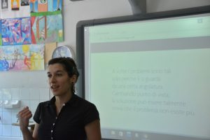 Questo è accaduto anche il 18 maggio, quando Agnese Baruzzi, una bravissima illustratrice di libri per ragazzi, è entrata nell’ aula della classe 1° B della scuola secondaria di primo grado Pertini della nostra città, classe coinvolta nella riprogettazione del parco del Noce Nero.