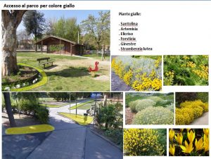 Punto di forza, l’ attenzione ai diversi accessi al parco, previsti di differenti colori in base alle essenze arboree lì presenti.