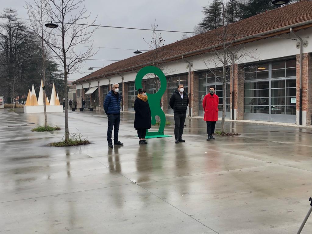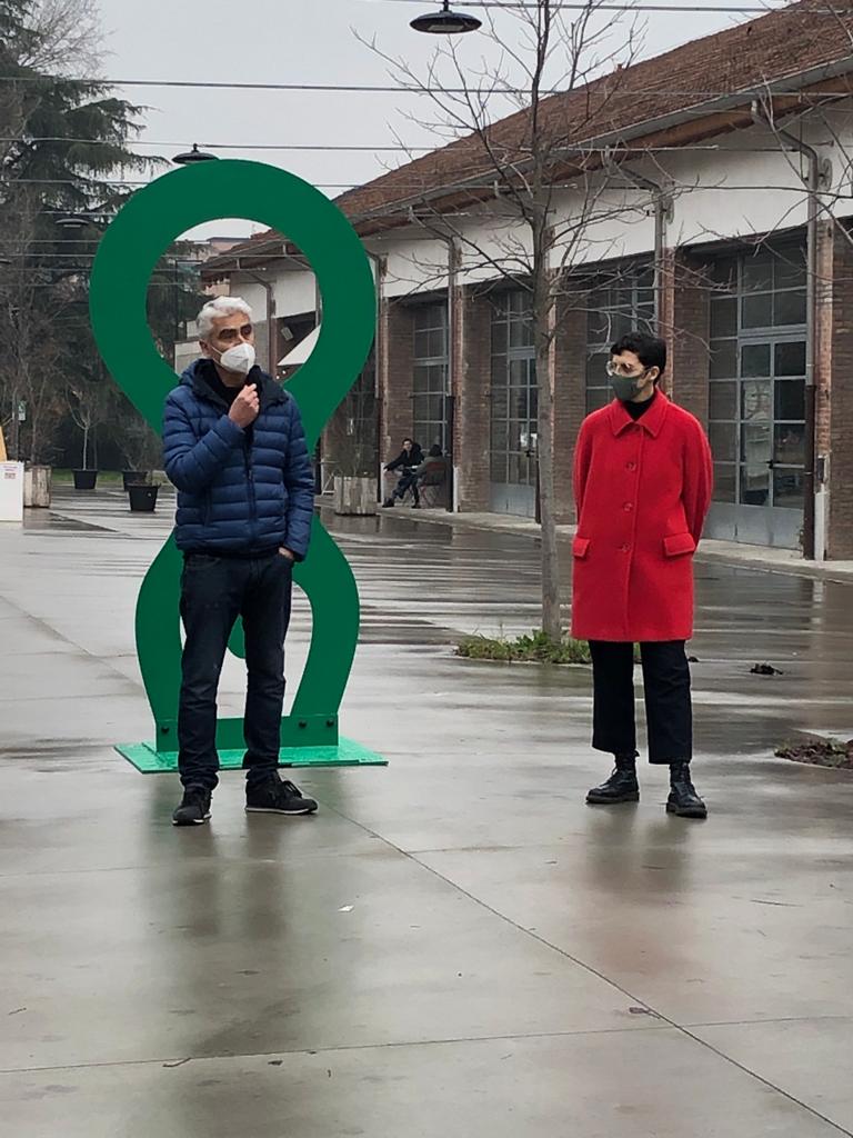Nella preparazione della mostra tre installazioni dell’artista sono state posizionate in luoghi simbolici della città. Una di queste – una figura a testa in giù che simboleggia la possibilità che questo spazio di condivisione e apertura dà di guardare il mondo da diversi e molteplici punti di vista – è stata collocata nel piazzale de La Polveriera che ospita parte dei servizi coinvolti nel percorso progettuale con Olimpia.