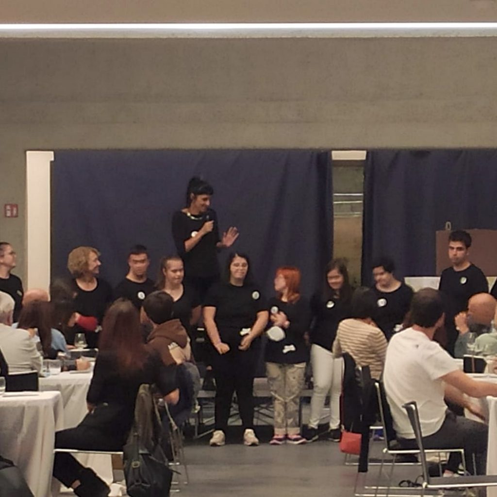 All’evento gli ospiti, bendati durante la prima portata, hanno potuto sperimentare un menù ideato da Food in Chiostri con cibi rigenerarti da un diverso punto di vista. Alla serata ha partecipato anche il gruppo di persone con disabilità I GIRAREGGIO che, dulcis in fundo, ha messo in scena uno spettacolo dedicato al dolce.