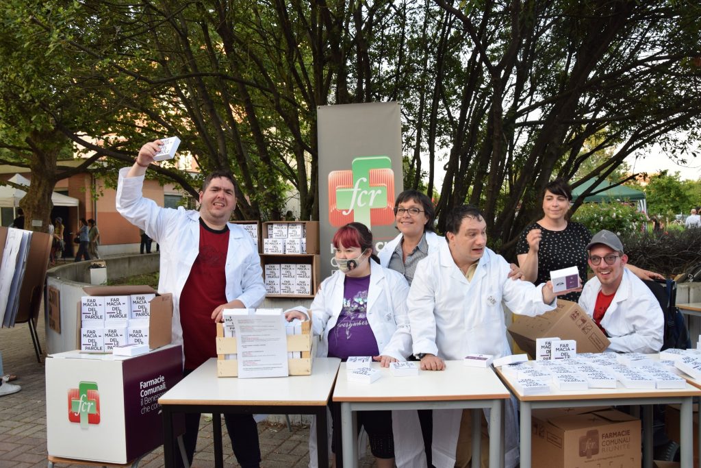 Muovendosi tra le vie immaginarie di questa città, i visitatori hanno trovato anche la Farmacia delle Parole, una postazione unica in cui alcune persone con disabilità di STRADE hanno vestito i panni di farmacisti d’eccezione e consegnato un farmaco simbolico molto speciale, composto da parole che curano l’anima.