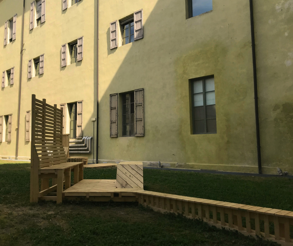 Per questo motivo, prima dell’avvio dei lavori nel cortile della Biblioteca Panizzi, gli architetti e le architette partecipanti hanno incontrato alcune persone con disabilità fisiche e visive. Le loro esperienze di vita hanno contribuito a sensibilizzare, stimolare e ampliare la visione del progetto.
