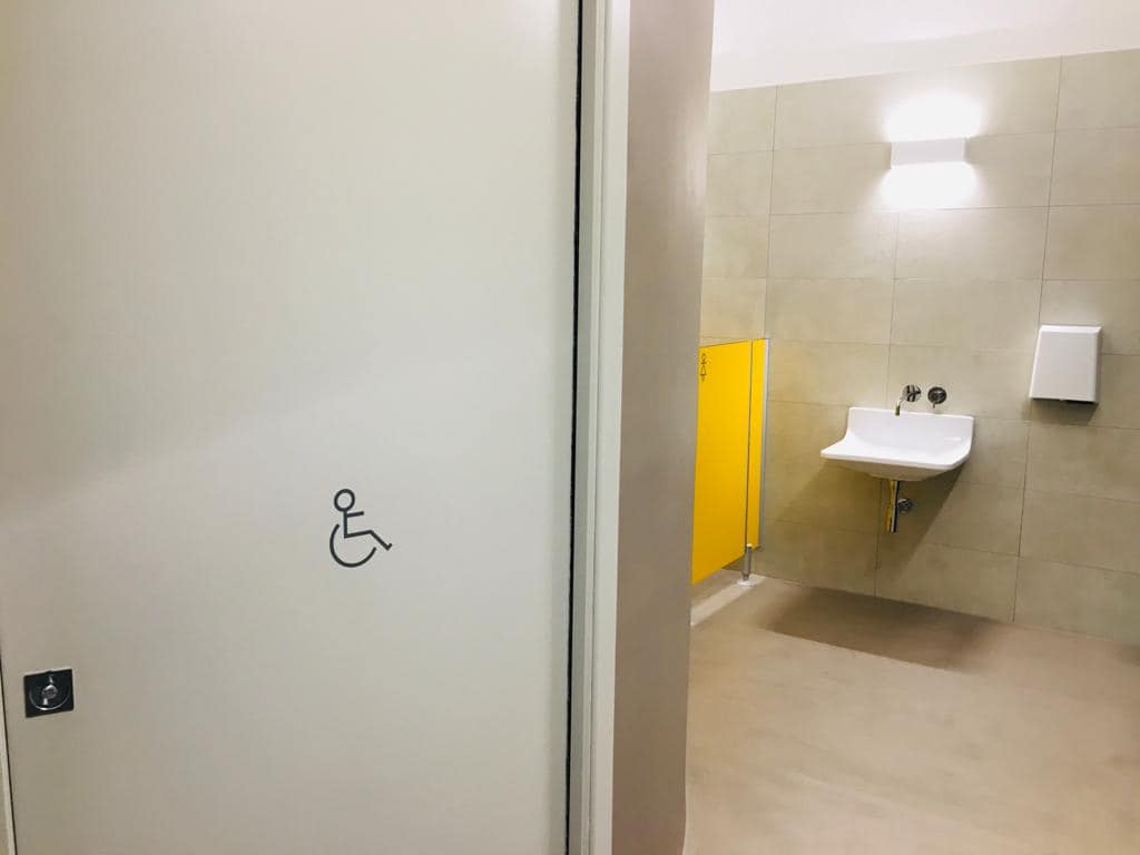 I bagni sono nuovi, belli, completamente riqualificati ed accessibili, senza distinzioni, studiati in modo specifico per essere utilizzati anche dalle persone con disabilità. Troverete anche una zona studiata e creata a misura di bambino, con sanitari, lavabo e porte di misure ridotte, un fasciatoio e una postazione allattamento.