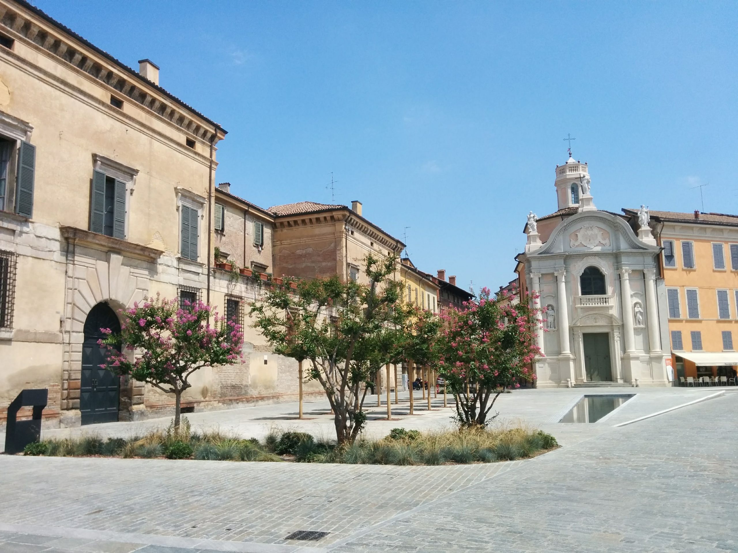 I lavori di ripristino della pavimentazione di Piazza Prampolini, realizzati per un importo di 64.000 euro (parte del budget totale annuale di 200.000 euro previsto dal Comune di Reggio Emilia